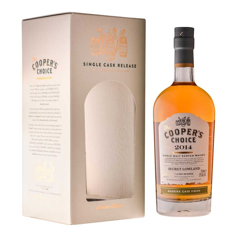 妥協なき樽職人の矜持(プライド)が熟む唯一無二のウイスキー かつて、ボウモア蒸留所で20年以上ゼネラル・マネージャーとして研鑽を積んだブライアン・クルック氏によって、1992年にグラスゴーにて創業。樽職人の名を冠した「ザ・クーパーズ・チョイス」は、その樽選びの独創性と品質の高さで今や世界20カ国以上に輸出をするほどの人気シリーズブランド。ザ・クーパーズ・チョイスシークレット・ローランド 2014 8年 マデイラカスク・フィニッシュ 57.0% 700ml 14300 円 (税込)【テイスティングノート】香り:トーストしたオークとペイストリー、軽やかなコーヒー。味わい:甘いモルトとブラウンシュガー、スパイス、バニラ、ドライフルーツ。フィニッシュ:ミディアムな長さでドライフルーツが残る。情報原産国: スコットランド地域: ローランドブランド: ザ・クーパーズ・チョイスメーカー: ザ・ビンテージモルト