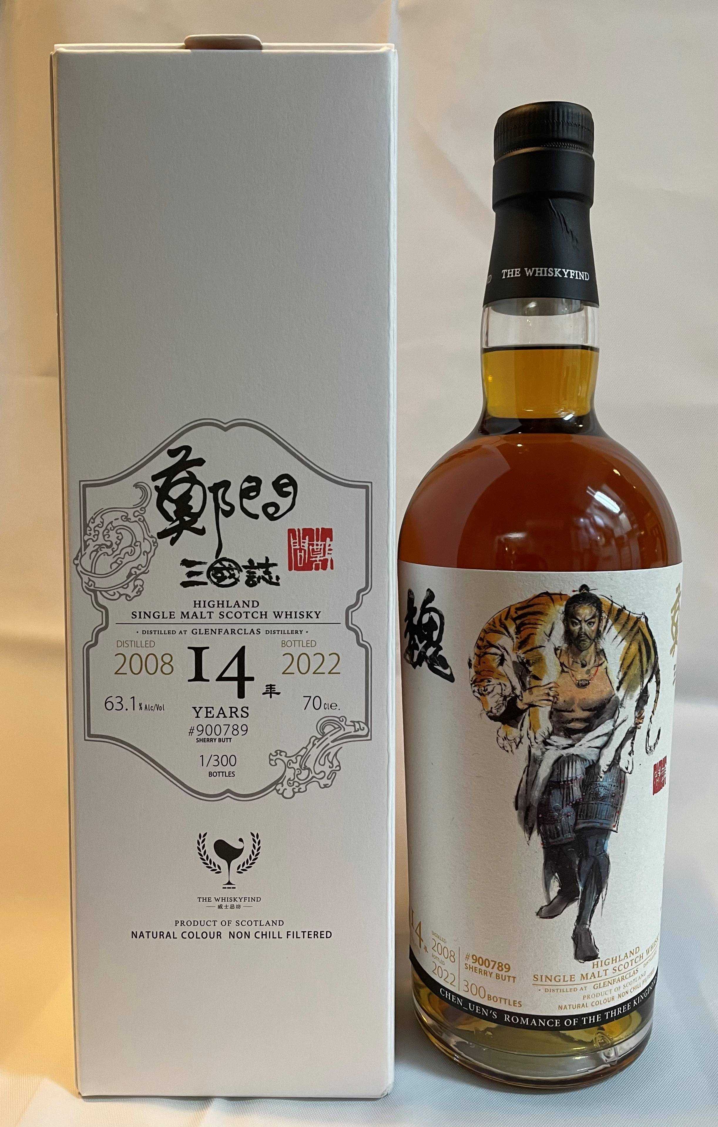 鄭問三國誌 - 許褚 Glenfarclas 2008 14年 63.1% 700ml 33000円(税込)・Distilled: 2008 ・Bottled: 2022・Cask Type: Sherry Butt ・Cask No.: 900789・本数:300本 ・輸入:60本~概要~許褚は虎の様な強さを誇り、曹操の護衛を務めていました。彼の戦歴の中でも有名なものの1つに、馬超との戦いが挙げられますが、その際も非常に曹操の危機的状況の中、彼を守り切りました。鄭問は、やはり非常に力強く許褚を描いています。彼のその性格は、直火蒸溜ゆえの力強く真っ直ぐなボディを持つグレンファークラスそのものです。 ~テイスティングノート~・Nose:スモークプラム、紅茶、マーマレード、ドライフルーツ、ソルトバター、タバコ、スモーキー・Palate:スモークプラム、煮込んだフルーツ、チョコレート、モカ、ダークロースト珈琲、オイリー、フルボディ・Finish:ドライフルーツ、オイリー、パワフル、長い余韻