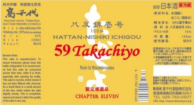 精米にこだわりの59Takatiyoシリーズ年明け1弾は八反錦1号を使用したリンゴ、バナナを感じるフルーティーな味わい59Takachiyo 「HATTANNISHIKI」 純米吟醸 1,8L 3410円 720ML 1815円(税込)