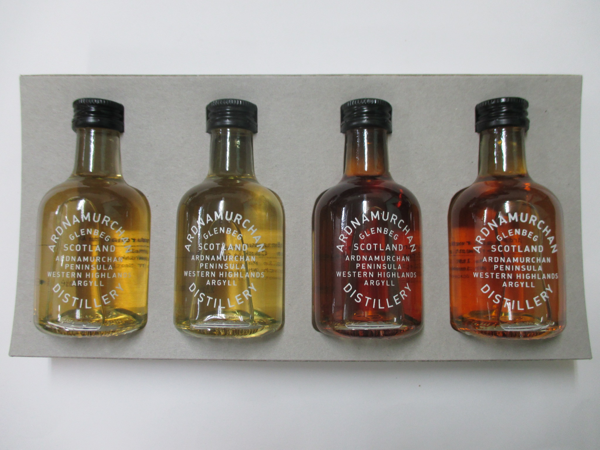 なかなか手にすることの出来ない限定品も入った販売店限定4本セット超限定 アードナムルッカン4本入りミニチュアセット 1箱 50ml の4本入り 5300円(税込)写真左より定番 Single Malt 46.8%Rum Cask Release 50%Sherry Cask Release 50%Sauternes Finish 50%