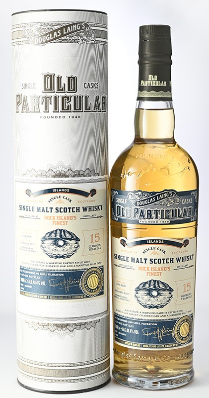 1948年スコットランド グラスゴーにて創業後、豊富なアイテムやその素晴らしい品質で、世界のモルトラバーを魅了し続ける大御所ボトラーのダグラスレイン(DL)社。厳選された高品質なモルトだけがリリースされるメインブランド「オールド パティキュラー(OP)」は、特に人気を博しており、長年の経験からそのウイスキーのポテンシャルを最大限引き出すべく、「18年熟成以下の樽は48.4度」「19年熟成以上の樽は51.5度」という他にはない彼らの哲学でボトリングされております。今回ご案内するのは、特別ラベルのシークレットアイランド「ロック アイランズ・ファイネスト」になります!こちらのボトルは、DL社「ロック アイランド」のラベルに使われている貝が採用されており、また「ロック アイランド」を構成するアイランドの蒸留所「島物」モルトを使用した「シークレット・アイランド・シングルモルト」です。ロック アイランズ・ファイネスト 2008 15年ダグラスレイン オールド パティキュラー 容量:700ML 度数:48.4度 18900円(税込)カスクタイプ:リフィルホグスヘッド 生産本数:402本 <テイスティングノート>あたたかい土のニュアンスとともに、焦がし砂糖、大麦、チャーしたオーク、海塩の風味