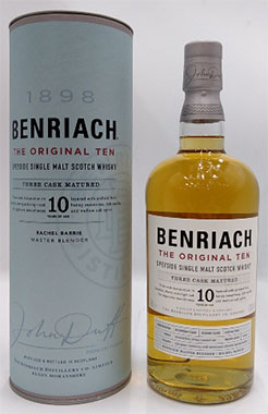 ベンリアック オリジナル テン 43度 700ML 5500円(税込)創業1898年のベンリアック蒸留所は、エルギンの南約5キロにあるロングモーン蒸留所に隣接して建てられた。ベンリアックとはゲール語で「灰色がかかった山」の意味。クイーンアン、サムシング・スペシャルの原酒のため1994年までシングル・モルトは販売されていなかった。ザ・オリジナル・テンは、バーボン、シェリー、ヴァージンオークの3種類の樽の組み合わせで熟成。味わいは、熟した洋梨、ネクタリン、麦芽の甘さ、アーモンド、スパイスドバニラ。