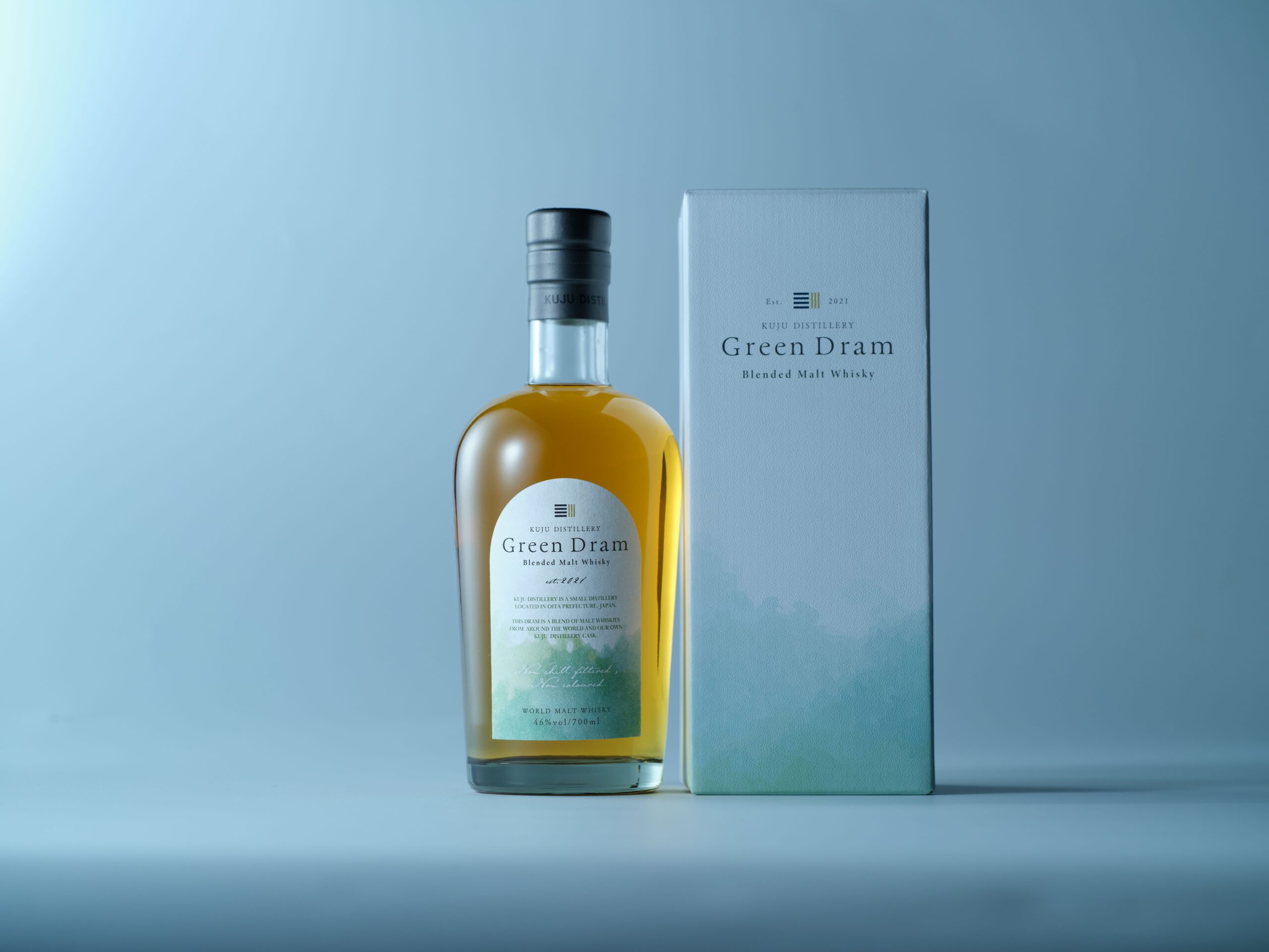 久住蒸溜所唯一の定番アイテム「Green Dram(グリーンドラム)」は、『Green Dram(グリーンドラム)』をバッチ変更に伴い、リニューアルいたしました。大きなデザイン変更はございませんが「New Born」がはずれ、国際基準を満たす「ワールドブレンデッドモルトウイスキー」となりました。今回のリニューアルでは、これまでブレンドに使用していた熟成3年未満の自社原酒を、3年以上熟成を経たモルト原酒に変更。自社で樽に詰め直して追熟させた海外からの購入原酒も熟成が進んだことに加え、3年以上の熟成期間を経た自社のモルト原酒を使用できるようになったことで熟成感や樽香を感じられる仕上がりになりました。これまで同様、印象的な爽やかさを生かしたバランスの良さを引き出したブレンドに加え、ボディ感や麦芽の甘み、そして、熟成感が出てきたことでまろやかさがはっきりと感じられます。もちろん、ジャパニーズウイスキーの醍醐味でもある「水割り」を堪能できるバランスにこだわりブレンド。水割りでもハイボールでも崩れないバランスの良さは変わりません。 グリーンドラム ブレンデッドモルトウイスキー 46度 700ML 7700円(税込)