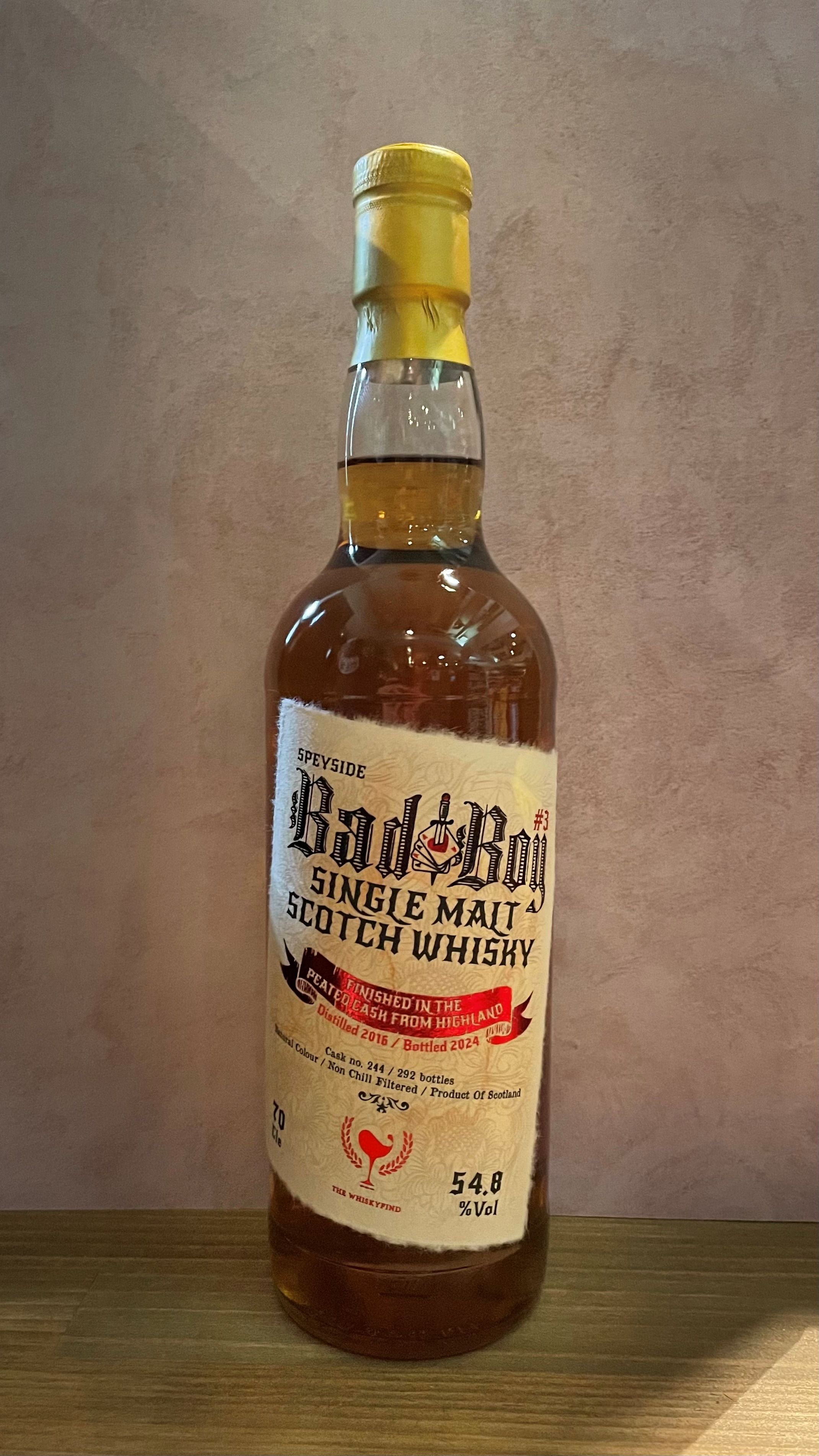 Bad Boy #3 Craigellachie 2016 8年 54,8度 700ML 9900円(税込)・Bottled: 2024・Cask Type: Finished in Highland Peated Marsala Cask・Cask No.: 244・本数:292 本 ・輸入:120 本「Bad Boy」シリーズ最後にあたる第三段のために、ハイランドピーテッドマルサラカスクを用意し、その樽にて2016年ヴィンテージのクレイゲラキを18 か月間追熟致しました。古いハイランドウイスキーの、懐かしい納屋や農場の香りを伴う力強いモルトの骨格を誇り、フルーティーさとスモーキーなミーティーさの、豊かなタペストリーを醸し出します。複雑な、月日を超えた味わいの表現のために熟成されたこの1樽は、「Bad Boy」ピーテッドトリロジーの有終の美を飾るにふさわしいウィスキーとなりました。~Tasting Note~・Nose: アプリコット、畳、クリーミー、モルト、グリルベーコン、甘柿、窯焼きナッツ、スモーキーピート、ほのかなフルーティーさ、レーズン、野生のベリー、蜂蜜、黄色い花とフルーティーな香り・Palate: 熟したフルーツ、モルトの香り、スモーキーさ、イチジク、ほのかな塩味、クローブ、ミネラル、タバコ・Finish: ベルガモット、ジャックフルーツ、ドライアプリコット、イチジク、クローブ、ミネラル、モカ、ココア、畳、タバコ、スモーキーさ、そして頬に感じる唾液を誘うような香り