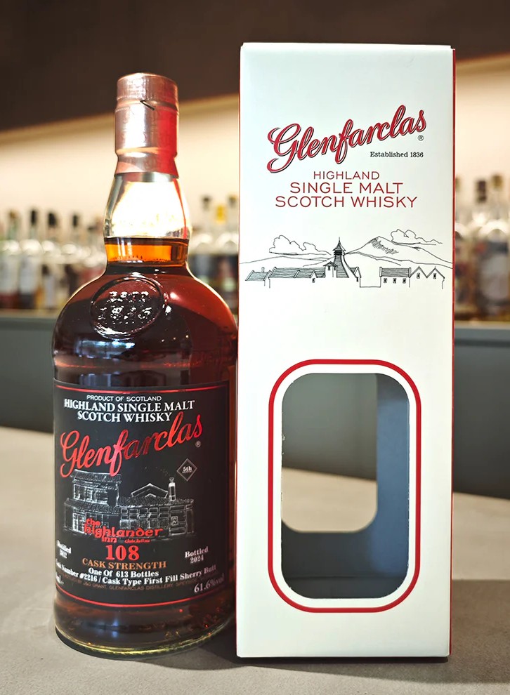 グレンファークラス108 2012-2024 12年 FOR ハイランダーイン秩父 1st フィルシェリーバット#221661.6度 700ML ¥32,890 税込 ハイランダーイン秩父を運営するハイランダーインジャパンが厳選するアニュアルボトリング。5周年を迎えた2024年にリリースする第5弾は、マッカランの好敵手と云われて、6世代にわたり家族経営を続けるとともに、伝統的なスペイサイドスタイルによるウイスキー造りにこだわりつづける、現在では数少ない蒸溜所グレンファークラス。 皆川達也氏以下、ハイランダーインジャパンのメンバーが複数のカスクサンプルをテイスティング、メンバー全員の意見が一致し、1stフィルシェリーバットの1樽が選定された。クラシカルなシェリー樽熟成の香味とドライフルーツやスイーツの上品な甘さのバランスが絶妙。 グレンファークラスの歴史的な名作“105”のオマージュとして、シングルカスク・カスクストレングスでありながら“108”の表記を採用。スぺイサイドの伝統と歴史が詰まった1本だ。 特集記事https://prtimes.jp/main/html/rd/p/000000004.000153211.htmlウィスキーファン88POINThttps://www.whiskyfun.com/#150225 Tasting comment by 北梶 剛【香り】オロロソシェリー、ランシオワイン、カカオパウダー、くるみ、カラント、革張りの家具、乾燥茶葉、芝土、鉛筆削り、樟脳。【味わい】プルーン、ドライイチジク、フランベしたバナナ、ステーキの上のパイナップル、チョコレートケーキ、黒糖アーモンド、紅茶、フルボディ。【フィニッシュ】非常に長く、複雑。アメリカンチェリー、ブルーベリージャム、柏餅。その後、ジンジャー、炙った獅子唐や万願寺唐辛子等スパイスの優しい温かさ。【コメント】クラシカルなシェリー樽熟成の香味とドライフルーツやスイーツの上品な甘さのバランスが絶妙。グレンファークラスの歴史的な名作“105”のオマージュとして、シングルカスク・カスクストレングスでありながら“108”の表記を採用。スぺイサイドの伝統と歴史が詰まった1本だ。