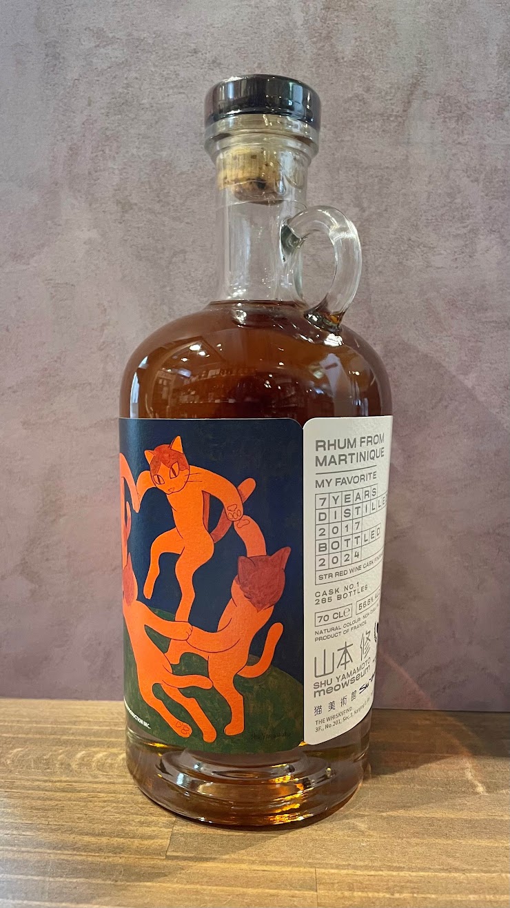 Meowseum Dance マルティニーク (La Favorite) 7年 56.6% 700ML 20350円(税込)・Distilled: 2017 ・Bottled: 2024・Cask Type: STR Red Wine Cask Finished・Cask No.: 1・本数:285本・輸入: 102 本「ダンス」は、フォーヴィスム(野獣派)の巨匠アンリ・マティスの最も有名な作品です。この絵の中では、真夏の青空とエメラルドグリーンの大地を背景に、健康的な赤褐色の肌のダンサーたちが、自然との野生的で野性的な調和を体現しています。この鮮やかな色彩、自由な形、そして感情の激しさの相互作用は、フォーヴィスムの真髄である、生命を肯定する活力を見事に捉えています。山本氏による「猫化」再解釈では、ダンサーたちは鮮やかな色合いの5 匹の赤毛の猫に変身します。大地と空を背景に、彼らは前足を握り合って活発な円を作り、動きからは喜びと活気が伝わってきます。マティスはかつて「色は生命である。色がなければ、生命はない」と宣言しました。この色彩の輝きの哲学を称えるため、私たちはマルティニーク産の名高いラム酒を選びました。1862年に設立された家族経営の蒸留所で生産されるこのラム酒は、独特のウッディで樟脳のような香りで知られています。STRワイン樽で12か月熟成させた後、熟したトロピカルフルーツとサフランのシンフォニーに変化します。クリーミーで噛みごたえのある食感が、アスパラガスジュースのさわやかな新鮮さと絡み合い、カンフルとバームの香りが大胆にピルエットを奏で、それぞれの風味が豊かで透明感を持って現れ、活気と活力というフォーヴィスムの精神を反映しています。~Tasting Note~・Aroma: グレープフルーツ、カンフル、竹の葉、ビンロウの花、畳、クリーム、ココア、ブルーベリームース、サフラン、バーム・Palate:グレープフルーツ、ブラッドプラム、塩漬けプラム、ブラッドオレンジ、ココア、カンフル、ハーブトニック、リンドウの根、アスパラガスジュース、ハーブ・Finish:アスパラガスジュース、グレープフルーツ、サフラン、オレンジピール、ハーブトニック、ミネラルの香り、ビンロウの花、塩味