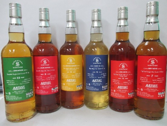 ~メゾンドウイスキー社から 人気シリーズ 「アーティスト コレクティブ」 ニューリリース 6種類~今回はフランスのパリに拠点を構える世界的に有名な「ラ・メゾン・ド・ウイスキー」社のオリジナルシリーズ「アーティストコレクティブ」の最新リリースとなる6種類を日本の皆様にご紹介いたします。パリ市内に小売店を構える「ラ・メゾン・ド・ウイスキー」社は、小売だけでなく数多くの有名ブランドの輸入代理店としても活動しています。同社は2021年には創業65周年を迎え、世界の愛好家が驚く圧巻の品揃えとボリュームで様々な記念ボトルをリリースしました。ウイスキーだけでなくブランデーから各種スピリッツまで、また造り手は大手メジャー系からクラフト系まで幅広くセレクトしています。生産者との確固たる信頼関係を築き上げた同社だからこそ実現することの出来た素晴らしいラインナップでした。同社ではオリジナルラベルのシリーズとして、上級レンジの「アーティスト」を発売していますが、この「アーティストコレクティブ」は、「アーティスト」の普及版となるミドルレンジのシリーズです。上級レンジの「アーティスト」のコンセプトはそのままに、やはりラベルには芸術的な絵画を採用しています。毎回現代のアート界で活躍する気鋭のアーティストを選んでおり、今回リリースのカトリン・ブレマーマン氏はドイツ生まれのアーティストで、ベルリンを拠点にコンテンポラリーアート界で活躍し、著名なファッションブランドとも協業、近年はヨーロッパやアメリカでも個展を開催しています。「アーティスト」シリーズよりもお手頃ですが、そのパッケージは高級感が出ています。上記写真のように、表裏ラベルに蒸留所等の詳細と絵画とが別々に記載されている、とても凝ったパッケージとなっております。メゾンドウイスキー社が自信をもって世界市場でリリースした「アーティストコレクティブ」を是非お買い求めください。 ベンネヴィス2017 7年 43度 700ML 17300円(税込) 2nd Fill Oloroso Sherry Butt 香りは活気がありフレッシュ、レモンキャンディ、ココナッツミルク、ジューシーなパイナップルのバランスが良く、後からシナモン、ホワイトペッパーの甘いスパイス、蜂蜜、モルトでよりリッチな香り。味は繊細でシャープ、トロピカル&ミルキー、ハーブ、アニシード、バニラでデリケートな口当たり。フィニッシュは長くて高品質なフレッシュなアーモンドやピスタチオ、後からナツメグ、クローブ、ホワイトチョコレートやアーモンド系洋菓子。 ベンネヴィス Peated 2016 8年 57.1度 700ML 1st Fill Montravel Hogshead 26400円(税込)香りは リッチで濃厚、凝縮して複雑、ドライなピート、トフィー、オレンジの皮、チョコレート、微かな塩、トーストしたクルミ、土っぽい、だんだんとアイリスやヒヤシンスが拡がる。味はクリーンで凝縮感がありコショウ&パプリカ、洋梨、アプリコット、グレープフルーツのキャンディ、優しいモルトと灰、後からトロピカルフレーバー&メンソール。フィニッシュは長くシルキー、ダークチョコレートが繊細なピートを包み込み、タバコやショウガ、ユリの花。 ※Montravel - フランス産赤ワインカリラ2015 8年 43度 700ML Hogshead 15400円(税込)香りははっきりとした透明感、燻った灰かすにミネラル感、レモン、心地よいモルトと蜂蜜、後からホットなペッパーのスパイス、薬品のような軟膏や樟脳。味はクリアでエレガント、熟成感がもたらすバニラやスズラン、アイリス、洋梨、ミント系ハーブティー、動物系やチョークのニュアンス。フィニッシュはタールやパイプタバコ、リコリスの甘み、青々としたモルトの畑で最後に鉛筆の芯やミネラル。 ブナハーブン ストイーシャ2014 9年 48度 700ML Rechar Hogshead 22000円(税込)香りは豊かでリッチ、最初オイリーでリッチなピートの香り、海しぶきと塩、後からチョコレートやロースト、かすかな樟脳、四川胡椒のスパイス。味は活気がありかつクリーミー、スモークやオイリーなピートがまとまり口内に拡がり爽やかな塩、洋梨、リンゴやパイナップルのキャンディ、麦芽、フィニッシュは長くリッチ、高級チョコレートと肉が最後に拡がる。 グレンロセス 2015 9年 48度 700ML 1st Fill Oloroso Sherry Butt 18900円(税込)香りは豊かですっきりしてブランデー漬けチェリー、マンゴー、トロピカルフルーツ、クルミやデーツで熟成感、あとから薬品、ローズやヒースでフローラル。味は芳醇で活き活き、ペッパーやスターアニス、リッチで甘いトフィー、樹脂、ブラッドオレンジ、マルメロのゼリーにお香が滑らかに拡がる。フィニッシュは長くシルキーでゲンチアナ&ソルティ、最後にグァバや柿のトロピカルフレーバーが広がる。 リンクウッド2012 12年 48度 700ML 1st Fill Bourbon Barrel17400円(税込) 香りはフレッシュで重厚、レモンキャンディ、アカシアの蜂蜜、フレッシュなクルミ、ライス、後からセージなどのハーブ。味は肉のようにリッチ、キュウ