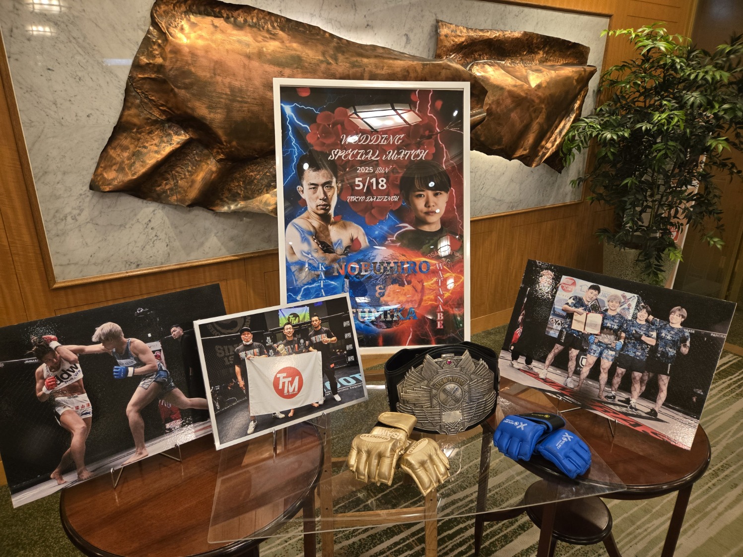 先週の日曜日は磯自慢酒造専務の結婚式で静岡まで行ってきたのですが業界のスーパースター勢ぞろいで久しぶりにお会いする蔵元さんも多かったのですがその感動冷めないうちの昨日は当店スポンサーで3月に見事タイトル奪取した女子格闘家第5代クィーン・オブ・パンクラス王座渡邉 史佳選手の結婚式に行ってまいりました旦那さんもプロ格闘家で格闘技オタクの店主は日頃見ていたレジェンド格闘家が目のまえで見れ大興奮多くの方に握手をしてもらいました真ん中にリングが設置され挨拶や花束贈呈に使われる格闘家らしい演出途中漫才師アマレス兄弟による余興、おみくじ抽選会など楽しいひと時を過ごしました会を終えて一緒に参加したフィジカルトレナーsさんと大宮に戻り取り引き先の「南九州うめえもん亭」で宮崎地鶏の炭焼きを堪能し日本酒を飲みながら夜10時半ころ解散しました末永くお幸せにしてくださいそして次回の防衛戦も楽しみにしております