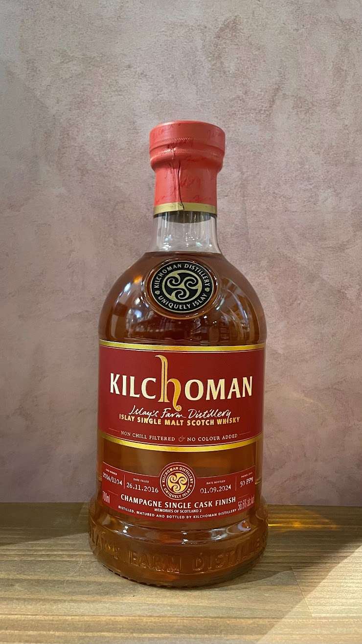 とても厳しい割当で1本のみの入荷で多数のお客様が御要望がありましたので量り売りにて販売いたします御了承くださいスコットランド・アイラ島のウィスキー蒸溜所「キルホーマン」より、日本向けにシャンパーニュフィニッシュの特別なカスク キルホーマン2016 シャンパーニュカスクフィニッシュ Memories of Scotland 2 56,6度700ML 19800円(税込) ・蒸溜:2016年11月26日 ・瓶詰:2024年9月1日・カスクNO:#1104 ・本数:241本 キルホーマンはアイラ島に2005年にオープンしたファームディスティラリーです。このボトルは、2024年6月、異なる立場からウィスキー業界に従事する7名、キャンベルタウンロッホ中村さん、藤田さん、コマスピ柳川さん、ラダー北梶さん、シャムロック前川さん、サザーランド石黒さん、キムラ木村が、アイラ島の一軒家で過ごした数日間の思い出と共にボトリングした特別なシングルカスクです。 ~テイスティングコメント~by shamrock 前川氏・Nose ローストアーモンド 白葡萄 グリーンバナナ ベーコン フェノール様・Taste 青バナナ フェイジョア グリーンレーズン ママレード マジパン ライムケーキ 洋梨 ピート・Finish 甘くて若いフルーツがスモークと混在し、ドライなピートが立ち上がってくる。 時間経過で甘みが増して柑橘をたくさん使ったシフォンケーキ。