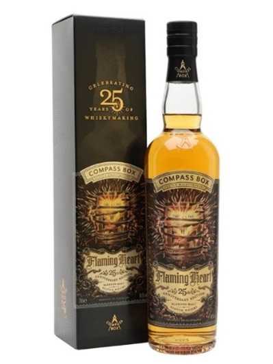~コンパスボックスから人気の限定ブレンデッドモルト 待望のフレイミングハート第8弾 約2年振りのリリースコンパスボックス社創設25周年 アニバーサリーエディション!~今回はコンパスボックス社がリリースした限定品「フレイミングハート」の最新リリース、第8弾をご紹介いたします。創設者であり、コンパスボックスのウイスキーのブレンディングを全て一人で手がけるジョン・グレイサー氏は、あのジョニーウォーカーのグローバルマーケティングディレクターとして活躍していました。しかし自分自身のウイスキーを作りたいという情熱が高まり、2000年にコンパスボックスウイスキー社を立ち上げるに至ったのです。彼が試みたのは、今までに無いアイデアで新しいスタイルのウイスキーを作り上げること。アメリカ人である彼はロンドンに拠点を移しウイスキー作りを「アート」に見立て、最高の作品を作るべく日々ブレンディングに取り組みました。数多くの賞と名誉を得た彼ですが、残念ながら昨年一線を退きました。しかし、共にブレンディングを担当していたジェームス・サクソン氏が、新しいウイスキーメーカーとして精力的に活動しており、その情熱はしっかりと引き継がれています!今回ご紹介するのは人気の限定品の「フレイミングハート」の第8弾で、コンパスボックス社の創設25周年記念の「アニバーサリーエディション」としてリリースされました。ラベルはメインのコンセプトである「スモーク・ピート」や、チャーすることによって生まれる「スパイス」を表す、炎に包まれた樽が描かれており、「25周年記念」のクレジットも入った完全限定品です!総生産数は9,384本で、もちろんナチュラルカラー&アンチルフィルターです。公表されているレシピは、タリスカー蒸留所のリチャーしたアメリカンオークホッグスヘッド48.1%、ベンリネス蒸留所のトーストしたカスタムフレンチオーク樽35.5%、「ウィリアムソン」アイラモルトのリチャーしたアメリカンオークホッグスヘッド13.4%、ラフロイグ蒸留所のファーストフィルマルサラ樽3.0%、となっています。FLAMING HEART 8th Release - 25th ANNIVERSARY EDITION 48.9% 70cl 24900円 (税込) オフィシャルテイスティングノート - 香りはリッチでオイリーなスモーク、ジンジャーのスパイス、奥からラズベリーやアプリコット、タールを含んだ船のロープ、味はクローヴ、ブラックペッパー、ナツメグ、後から薬品のようなピート&爽やかなワインのような果実味、フィニッシュは凝縮したスモークでウッディかつ灰のよう、メントールと柑橘系オイル。