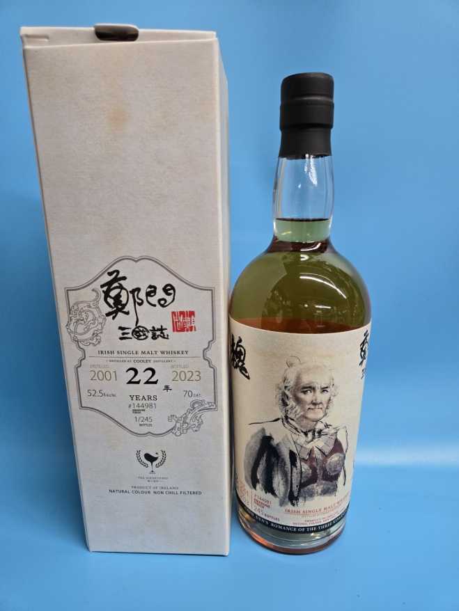 先達て試飲会で飲んで感動したクーリーが入荷しました 鄭問三國志 - 張郃 cooley 2001 22年 52.5% 700ML 60500円(税込)・蒸溜所:Cooley・Distilled: 2001・Bottled: 2023・Cask Type: Amarone Finished・Cask No.: 144981・本数:245本・輸入: 42本 張郃は戦場での指揮や戦術に非常に優れた将軍で、官渡の戦い後に曹操陣営に加わり、多くの武功を挙げました。彼は諸葛亮の北方遠征にて、軍を大いに破った。鄭問は、張?を白い髪と明るい目をした武将として描きました。 「知恵」と「兵法」という二つのイメージを組み合わせ、戦場で培われた洗練さと知性を表現しています。この張?に対応するために、アイルランド産クーリーのシングルカスクを選択しました。二度蒸留後、バーボン樽で熟成させ、最終的にイタリア産アマローネ樽で仕上げた、華やかで豊かな桃、ベリーの風味、伸びやかでオイリーなトロピカルフルーツ、丸みを帯びた質感、しっかりとして複雑な味わいのウィスキーです。 ~Tasting Note~・Nose: 桃、スミレ、月桂樹の葉、蜂蜜、柑橘類の砂糖漬け、トロピカル フルーツ、熟した果物、ドライ フルーツ、スパイス。・Palate: トロピカルフルーツ、柑橘類の砂糖漬け、非常にジューシーなスパークリングワイン、イチジク、まろやかでシルキーな質感。・Finish: トロピカル フルーツ、蜂蜜、ワックス、クローブ。