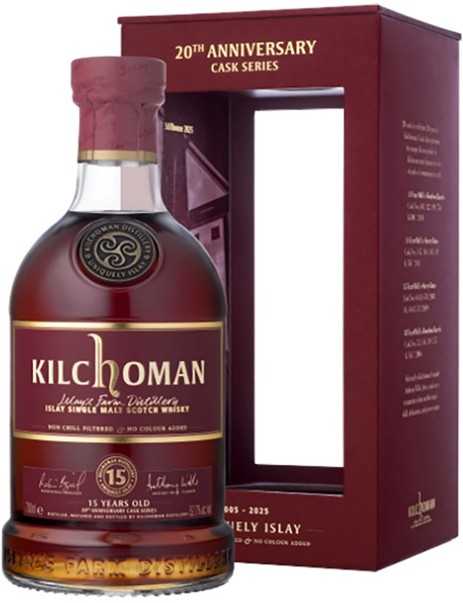 大変申し訳ございません電話での問い合わせは御遠慮くださいキルホーマン蒸溜所20周年記念カスクシリーズキルホーマン15年 シェリーカスクどっしりとしたシェリー樽の味わいが調和した限定商品キルホーマン15年は、キルホーマン蒸溜所の創立20周年を記念した特別限定商品です。アイラ島産ピートをたっぷりと焚き込んだ、フェノール値50ppmのヘビーピーテッド麦芽を使用し、ファーストフィル シェリーバットで熟成された原酒の中から、創業者のアンソニー・ウィルズが厳選した2008年および2009年蒸溜の5樽をヴァッティング。世界へ3,153本のリリースのため、日本へは232本のみの入荷です。香りは、リッチなシェリーの甘みを軸に、ペッパー、落ち着いたスモーク、ほのかに潮風が漂います。味わいはまろやかで奥行きがあり、スパイシーさとシェリーに漬けたようなダークフルーツが豊かに広がります。優しいスモークが塩気とともに旨みを引き立て、味わいに複雑さをもたらします。フィニッシュに、熟れたフルーツと塩気を帯びたダークチョコレートが調和し、温かみを感じる心地よい余韻が長く続きます。シェリーボムに近いどっしりとした芳醇な味わいにピートスモークが調和した贅沢な限定商品です。ぜひこの機会にお楽しみください。キルホーマン蒸溜所は2005年、アイラ島に124年ぶりに設立された「ファームディスティラリー(農場型蒸溜所)」です。蒸溜所の近隣に広がるピート(泥炭)を生かしてつくられる個性的なスモーキーウイスキーは、多くのウイスキーファンを魅了しています。キルホーマン15年 シェリーカスク 52.7% 700ml 29900円(税込)カスク:ファーストフィルシェリーバット No.644, 670 (2008年蒸溜)、No.16, 444, 513 (2009年蒸溜) 232本限定香り:シェリーの甘み、海風、ペッパー、落ち着いたスモーク味:シェリー、スパイス、ピートスモーク、ダークフルーツ、潮、チョコレート