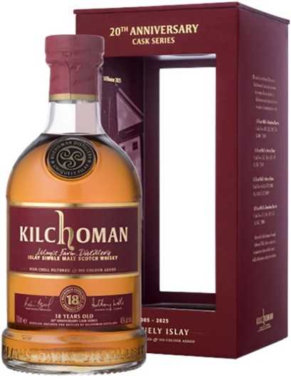 キルホーマン蒸溜所20周年記念カスクシリーズキルホーマン18年 バーボンバレル操業初期の2006年蒸溜原酒を使用した貴重な限定商品キルホーマン18年は、キルホーマン蒸溜所の創立20周年を記念した特別限定商品です。アイラ島産ピートをたっぷりと焚き込んだ、フェノール値50ppmのヘビーピーテッド麦芽を使用し、操業初期のファーストフィル バーボンバレル原酒の中から、創業者のアンソニー・ウィルズが厳選した2006年蒸溜の5樽をヴァッティング。世界へ1,209本のリリースのため、日本へはわずか80本の入荷です。香りはリッチなバタースコッチ、バニラ、キャラメルに、トーストしたオークの香ばしさと落ち着いたスモークが加わります。味わいはキャラメルの甘味とともに熟したフルーツが広がり、穏やかなピートスモークと海のニュアンスを感じるほのかな塩気が奥行きをもたらします。トフィーやバタースコッチの甘みがフィニッシュまで続き、海の気配を纏ったスモークと混ざり合い、心地よい余韻が長く続きます。18年熟成によって樽由来のキャラクターをたっぷりと湛えた、操業初期の貴重な原酒を使用した限定商品です。ぜひ、この機会をお見逃しなく。キルホーマン蒸溜所は2005年、アイラ島に124年ぶりに設立された「ファームディスティラリー(農場型蒸溜所)」です。蒸溜所の近隣に広がるピート(泥炭)を生かしてつくられる個性的なスモーキーウイスキーは、多くのウイスキーファンを魅了しています。キルホーマン18年 バーボンバレル 46% 700ml (参考紹介)カスク: ファーストフィル バーボンバレルNo.33, 146, 149, 155, 163 蒸溜:2006年香り:バタースコッチ、バニラ、キャラメル、トーステッドオーク、落ち着きのあるスモーク味:キャラメル、フルーツ、穏やかなピートスモーク、塩気、トフィー、バタースコッチ