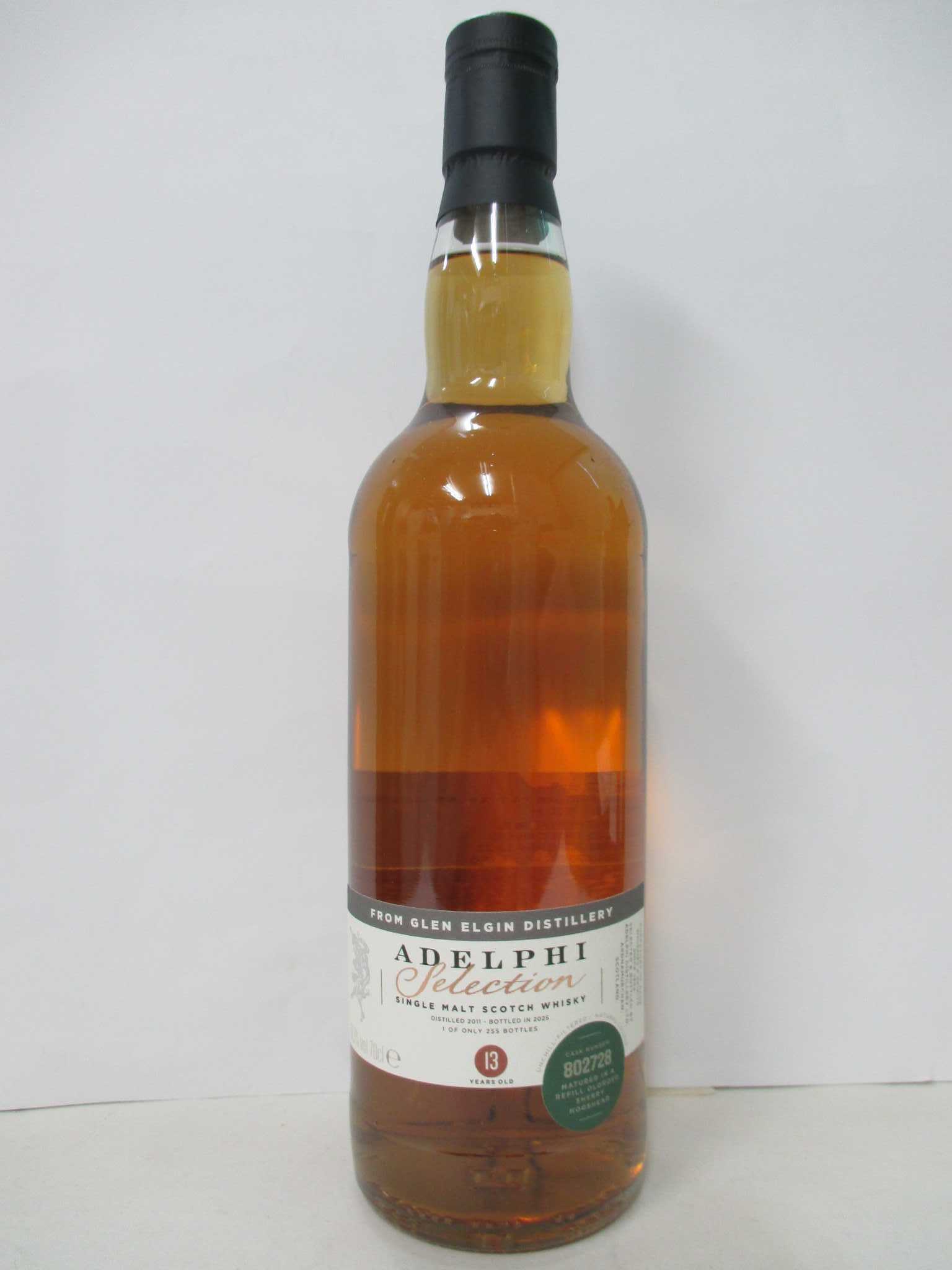 アデルフィ グレンエルギン 2011 13年 58,7度 700ml 14500円(税込) Refill Olo Sherry HHD 色は古書の紙、 香りはオレンジ、クローヴ、ピーチアイスティー、ユリ、白ワインベースのサングリア、イチゴジャム、春先のオニオン、味はシャンパンのような発泡感、白桃とバター、カルダモンとチリペッパーの入ったホワイトチョコ、塩味のカシューナッツ。フィニッシュは最初活き活きとして、甘くて滑らか長くて豊潤。