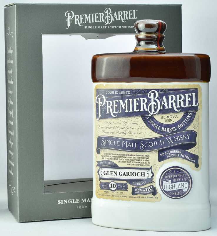 同社が送る“古き良き時代”ビクトリアン朝に使用されていたセラミックデキャンタを復元したシリーズ「プレミエバレル」は、最大の特徴とも言える器の趣はさることながら、この陶器ボトル特有の酒質の丸みや、熟成年数以上の深みと旨味の凝縮感が出ていると長年人気を博しています。