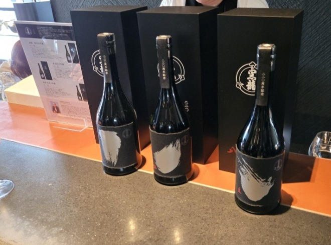 道を挟んだ鮨三心で先程解体したマグロ鮨を堪能して隣のISHIDYAで今度発売される220周年記念酒3本セットの試飲旨い!!
