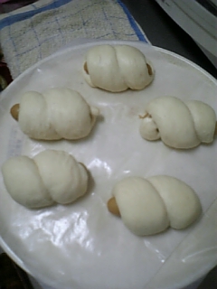 今日は久々に予定の無い日曜。ダンナは仕事。午前中は部屋の片付けで終了。。。午後から買い物に出掛け、帰宅後思い立ってパンつくり。成型は子ども達と一緒に。表面に卵を塗るのを省略したので焼き色がイマイチだけど、まぁ、こんなもんでしょう。明日の朝食に♪発酵を待つ間に、着付け教室の宿題である半襟付けと、補正用の腹巻みたいなものを作った。夕食はたこ焼き~~♪先週の水曜日に「ためしてガッテン」でたこ焼きの特集をやっていて、”週末はたこ焼きだ!”と私の中で決めていた(笑)テレビの通りに作った(つもり)から、なかなか上出来だった。色んなものを作った1日だった。