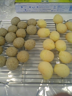 ポンデケージョって、こんな食べ物だったのね~って感じ。久々のパンだったけど、パンを作ってるという気がしなかった。(こねたり、発酵させたりしてないから)本場?のものは”キャッサバでんぷん”を使うらしいけど、手軽に手に入る白玉粉を使用してモチモチとした触感を出している。主な材料は白玉粉と粉チーズ。すごい量の粉チーズを使った・・・