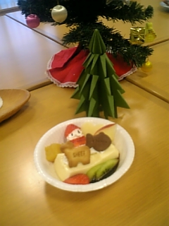 サークルのクリスマス会でした 毎年メンバーさんのアイデアと行動力に感動するような内容だけど、今回は「お手軽に」というコンセプトながらも、かなり充実したものだった。 プリンの素を使ったプリンをデコレーションしてオリジナルのプリンアラモードが手際よく用意されて、会の開始。 子ども達はあっという間に食べて、思い思いの遊びに移行。 大人たちは久々に会ったメンバーさんもいて、ゆっくりおしゃべり。 私はこれが一番嬉しかったな~ そして・・・ サンタさん登場! 衣装を借りてきてくれたメンバーさん、サンタさんに扮してくれたメンバーのパパさんのお陰で、子ども達大喜び。 プレゼントをもらって、記念撮影をして・・・ 大人も子どもも楽しい時間を過ごす事ができました