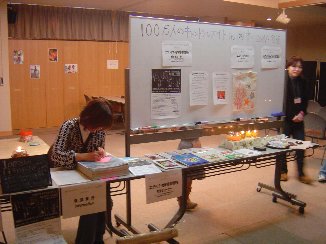 少し前にここで告知させてもらったイベント、いよいよ当日。雰囲気をご報告。会場の受付風景。今回、来場者に体験していただくイベントの一つに「キャンドル作り」があり、簡単にかわいいキャンドルを作っていただいた。その様子は、トップの写真。作っていただいたキャンドルは火を灯すとこんな感じにカップケーキ風のキャンドルで、とってもかわいい&おいしそう。会場には他にエコバッグ作り、スマイル・フォトグラファーさんの写真展(これはその2で詳しく)、スクリーンで映像の上映やカフェスペース、キッズコーナーもあり、私たちが「やりたい」「発信したい」ことを凝縮した内容だったと思う。(この日記の写真は、一緒にイベントをやったhiroさんのブログからお借りしました)その2、その3へ続く。
