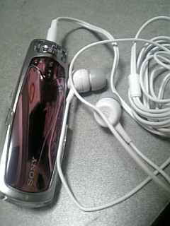 私の通勤の友”ネットワークウォークマン” 1年半ほどのお付き合い。 (当時の最新機種だったけど、今は新しいモデル(液晶画面が大きかったり、ワンセグ対応だったり)が数種類登場し、もう、どこの家電屋に行っても私が持ってるタイプは売ってない。。。) その友に、最近加わったのが白いイヤホン。 付属のイヤホンはコードが短いので、上の写真にあるように別売りのクリップを付けてコートの内ポケットや肩にかけたカバンにはさんで使わないと耳まで届かなかった。 今回加わった白いイヤホンはコードが長いので本体をカバンやポケットに入れたままでも耳まで届くのだ~ いつも、さりげないけどそのセンスが素敵なお心使いで私の気持ちを和ませてくださる方からいただきました。
