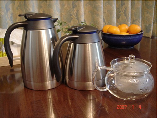 卓上ポット&急須1月2日に、この3点を買いました。左:【THERMOS】(サーモス)ステンレスポット(まほうびん)THJ1500-MBK(メタリックブラック)【1...お湯の保存用にしています。日本茶をいれる時に、丁度いい温度のお湯があるので、すぐに入れる事ができて便利です。中:【THERMOS】(サーモス)ステンレスポット(まほうびん)THJ1000-MBK(メタリックブラック)【1...直接ドリッパーを乗せて、コーヒーのサーバーとして使用しています。夫の両親は、コーヒーが大好き。特に義父は、食後には必ずコーヒーを飲みます。これに、タップリコーヒーを作っておけば、すぐにコーヒーを出すことが出来て、便利でした。ドリッパーは、カリタ103のプラスチック製(透明)を使用していますが、これは、このポットに上手く乗せられません。カリタ103の陶器製のドリッパーを注文しました。購入してから、↓このタイプがあることを知りました。こちらは、外側も丸洗いできるタイプです。私が買ったものは、外側の丸洗いは出来ないタイプです。右:wada ハリオ 茶茶急須 丸 (大) 700mlハリオ ガラス急須 茶茶急須 丸 450mlは、持っているのですが、大きいサイズも欲しくなり、購入。たっぷりお茶が作れて、便利です。