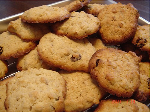 オートミールクッキー(オートミール+レーズン+くるみ入り)夫が帰宅するので、久しぶりにオートミールクッキーを焼いてみた。お菓子を作るようになって、初めて作ったドロップクッキーが、これだと思う。体重増加を警戒するあやっち(長女:中3)も、私が作ったおやつは、食べてくれる。喜んで食べていたあやっちだったが、夕食の時間になっても、「まだおなかが空かない。」と言っていた。22:30ごろ帰宅した夫にも、好評だった。