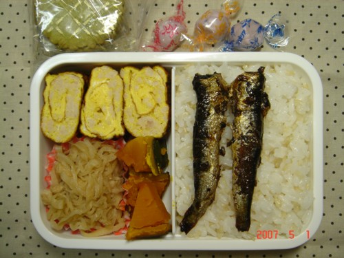 5月1日のお弁当あやっち(長女:高1)の、お弁当です。【おやつ用】 ・抹茶味のビスケット【昼食用】 ・ひとくちヨーグルト ・鶏そぼろ入り卵焼き ・切干大根と油揚げの煮物 ・かぼちゃの甘煮 ・発芽玄米入り白米+いわしの甘露煮