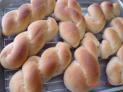 黒砂糖ねじりパン天気が悪く、ずっと家に居たので、黒砂糖ねじりパンを焼きました。簡単にできるパンですが、娘たちは、喜んで食べてくれました♪スキムミルクを大量に購入したので、多めに入れてあります。今まで焼いたパンの画像は、こちら♪