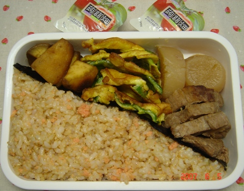 楽天フォトの容量が、もうすぐ50MBになってしまうので、お弁当画像は、こちらで公開することにしました。2007年6月のお弁当画像6月19日~21日までのお弁当画像を、追加しました。このお弁当を食べているのは、あやっち(長女:高1)です。あやっち:「昨日の夕食の残りでも、お弁当に入っていると、おいしく感じる。」と、言ってくれています。