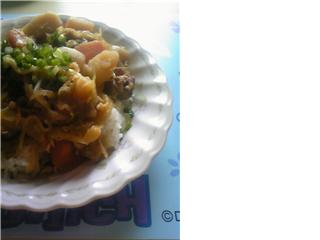 料理するのって・・・・好き?私は味に変化が出ればぃぃかなぁ・・・ってところなんだけど料理下手な私には、結構高度なわざだったりもするのです一昨日の夕飯に「肉じゃが」だったんですねさて・・・・これをどうしたもんかとキャベツも沢山余っているので・・・と思ったのがこちらキャベツの甘辛丼作り方は、残った肉じゃがにキャベツを入れて、卵でとじただけだすお好みで辛味を入れてどーぞいかにも「男料理」って感じ??気にしない気にしないそして、今日の一人ランチも同じメニューでした
