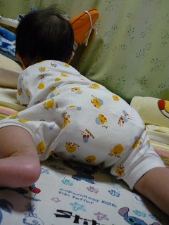 生後6ヶ月半ばの晶ちですが最近、ハイハイの兆候が出てきたように思いますこんな格好してます踏ん張っているような顔なんですが・・・・一生懸命、前に進もうとするんですが、なかなか上手く行かず泣く・・・って感じですまれに、足のキックと同時に身体が浮いて、前に顔面ごと「ガン」と行くことも・・・・最近では無くなりましたが 微妙に前に進んでいるんですよそうそうw今月の8日くらぃから、下から歯が少しだけ生えてきましたそろそろケアーをしなきゃいけませんよね?・・・・子供の成長って、本当に早いですよねかわいくてかわいくて、仕方なぃっす