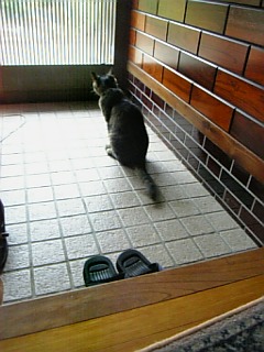 出してくださいニャー(´・ω・`) お外に行きたいけど鍵が掛かっててでられないのにゃーヽ(゜◇゜ )ノ親分だしてお願い。゜゜(´□`。)°゜。ワーン!!なんか寂しい後姿(´・ω・`) でも冷静に写真を撮るわたし(笑)