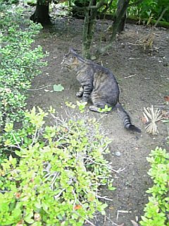 白い彗星ニャー!!俺の縄張りにはいってくるんじゃねーですニャー!!俺の餌は一粒たりとも渡さないであります_s(・`ヘ´・;)ゞ..ロビンさんとともにやってきた白い彗星しろたんは玄関前でロビンさんと格闘のすえ逃走!!ロビンさんは家に非難するのでありました``r(^^;)ポリポリ