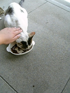 さわれたよー(T^T)ウルウル餌付け中に接触に成功しました^^ご飯食べた後もさわらせてくれました(>▽<;;やったー(*゜▽゜*)私はしろにゃんのしっぽがちゅき(>▽<;;さわりたーい(≧▽≦;)でも絶対怒られそう(T^T)ウルウル