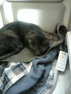 あきらめて(mー_ー)m.。o○ zZZZあきらめておじさんの服の上で就寝``r(^^;)ポリポリおこられないようにね<(T◇T)>うぉぉぉぉぉ!!!