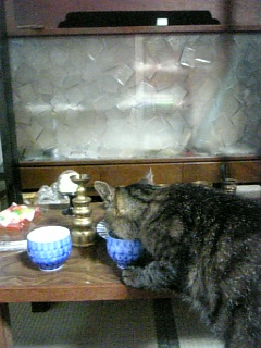 のどかわいたー(>▽<;;のどかわいたのはわかるけどロビンさんそこ仏壇のお水ですよΣ(□`;)エ!ロビンさんにちゃんと水別に準備してあるのに<(T◇T)>うぉぉぉぉぉ!!!