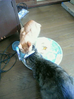 ご飯をむさぼる2匹!!俺もたべたいにゃー<(T◇T)>うぉぉぉぉぉ!!!俺のごはんなんっすけどΣ(□`;)アゥこのときロビンさんは一生懸命前足でちょこちょこカリカリを皿からうばってたべていました``r(^^;)ポリポリご飯を食べた後オレンジ君の名前ってもしかしてみかんなんじゃないかと直感した私はオレンジ君にみかんと呼んだらおとなしくなり始めてこっちをむいてにゃーとなきました(>▽<;;そして抱っこのも成功しました(´・ω・`) 嫌がってるけど``r(^^;)ポリポリ