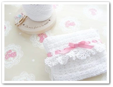 久しぶりに編みました!レース編みして最後にリボンを通して、ちょっぴり乙女チックにこちらの本を参考に作りました。ホントは両端にひらひらレースがついている可愛いティッシュケースの作り方が載ってます。お菓子も編み物もレシピ通り作れない子です。。。