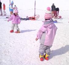 へび姫&らむ姫は初めてのスキーに挑戦パパと母もたぶん10年振りのスキー。泊りがけでも考えたけど、今回は日帰りのバスツアーで行ってきました。地元の駅前までバスが来てくれるのはいいけど、朝が早くて集合は5時半子供達はテンションが高くって朝もスムーズに起きてくれました。今回行ったスキー場は栃木県のマウントジーンズ那須。なぜそこに決めたかと言うと、ここはスキースクールが3歳から受け付けてくれるのよ~。だいたいは幼稚園年少~ってところが多いから、そうするとらむ姫がスクールに入れないの。ここは3歳からだから、らむ姫も一緒に参加することが出来ました。スクールは1時からなので早お昼をして時間を潰してました。集合時間に集まるといるわいるわ20人位いましたへび姫に「ママ達は見てないで」と言われたので、早速パパと久しぶりの2人きりのスキーを満喫。10年振りとは言え、体は覚えているのか、昔の滑りが~と、言ってもボーゲンに毛が生えた程度なんだけどね時々こっそり様子を見たりして3時にレッスン終了~。2人共口を揃えて「楽しかった~」と初スキーを楽しんでくれました。その後はバスの集合時間まで、スクールで使っていたところでスキーもどきを楽しみました。2人共自分で止まれないけど、滑ることが出来るようになりました。 あまりの楽しさに、母は残り少ない今シーズン中にあと1~2回行けたらいいな~。