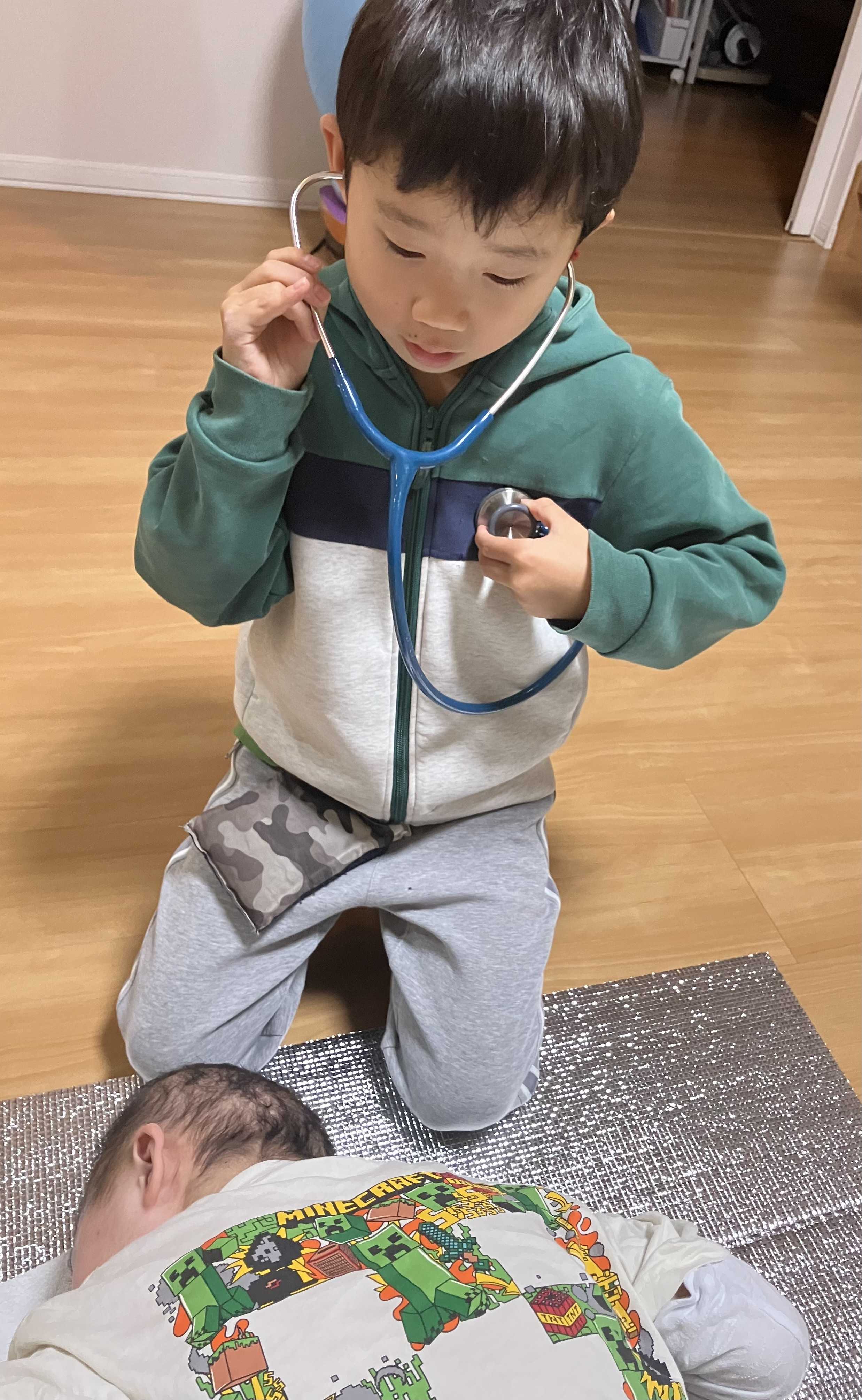 次男🐒「音が変わったー。痰が動いてるんだね。」