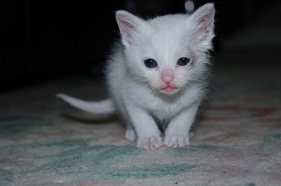 夜の8時過ぎのことである玄関先でやたらと猫の鳴き声がするしかも どうやら子猫のようだあまりにも鳴くのでドアを開けてみようとしたが何かがドアに当たってるなんと 子猫が入った段ボールが置いてあるではないか急ぎ抱えて階段を降りて外を見まわしたがそれらしき人は見当たらないぽいと捨てるわけにもいかず仕方なし猫の入った箱を抱えてうちの中に入った中にはまっ白い子猫とビニール袋に入った猫用の粉乳そしてそれを使って飲ませるのであろうと思われるスポイド手紙がしたためてあった以下文面ノミ・ダニの駆除は病院でしてもらいました猫エイズは体重一キロ以上でないと出ないそうです生後約2週間くらいだそうですまだ生後一週間です猫ミルク2gを5~6回一日に与えてくださいまだカリカリをふやかした物も食べられません食事の前にティッシュなどで軽くおしりをつついてトイレを促してください手がかかる時期ですがよろしくお願いします以上ですしかしどうして俺のとこなんだろまるで知人のような文面である動物は大好きだけど ここは団地入院もあるだろうし寿命も残り少ない後々のこともいろいろ考えるどうしたらいいか 悩んでる今は俺の膝の上で寝息を立ててる下におろすと鳴き声がやかましい可愛いことは可愛いけど困ったな~