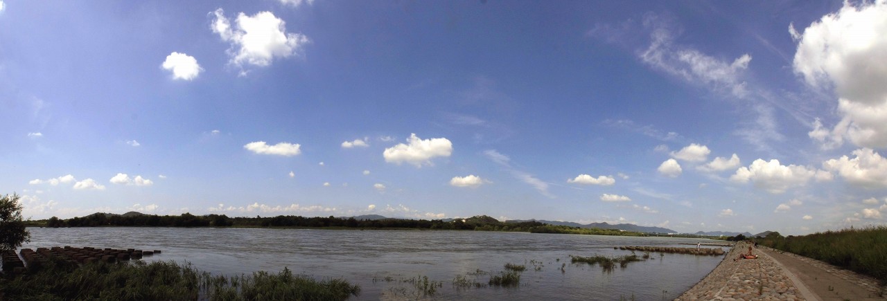 世間は皆既日食一色残念ながら見た人は少ない皮肉にも午後から日が照ってきた久しぶりにカメラを肩に木曾川の散歩と言っても自転車であるここのところ 雨が多いせいだろう木曾川の水位もかなり上がっていた