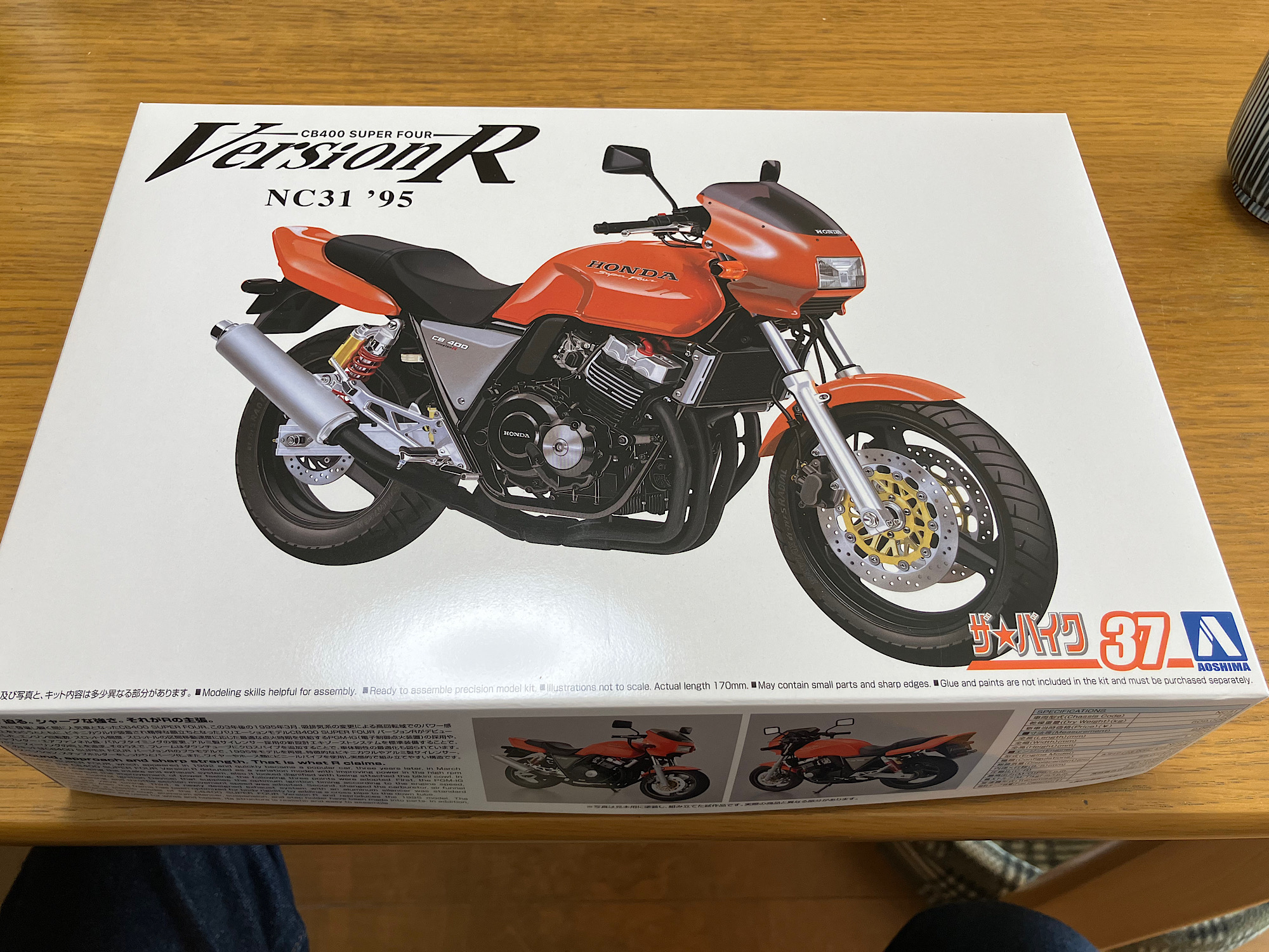 元旦に着手して、松の内には完成するかと目論んでいたCB400がようやく完成。車体カラーのオレンジは、クレオスの水性ホビーカラー。リニューアルした後の水性ホビーカラーは、とても良い。トップコートなしで、この光沢。今回も手抜きモデリングで、ホイール、フレーム、シートは成形色を活かして無塗装。さて、次こそ飛行機を作ろうっと。