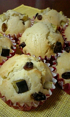 今回はレーズン(グリーンだったの;)とサツマイモの甘露煮を入れてみました♪