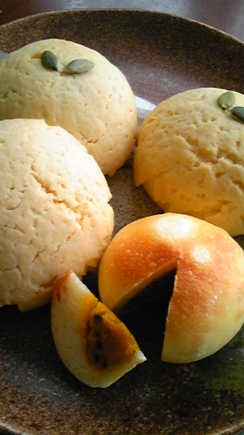 カボチャメロンパンを作ってみたくって南瓜ペーストは作って冷凍してあったんだけどベンチtimeまで思い出せずf^_^;