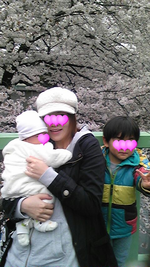 昨日の方が暖かくって地元の桜祭に散歩がてら2ヶ月の娘を抱っこして4歳の息子と手を繋いで…♪