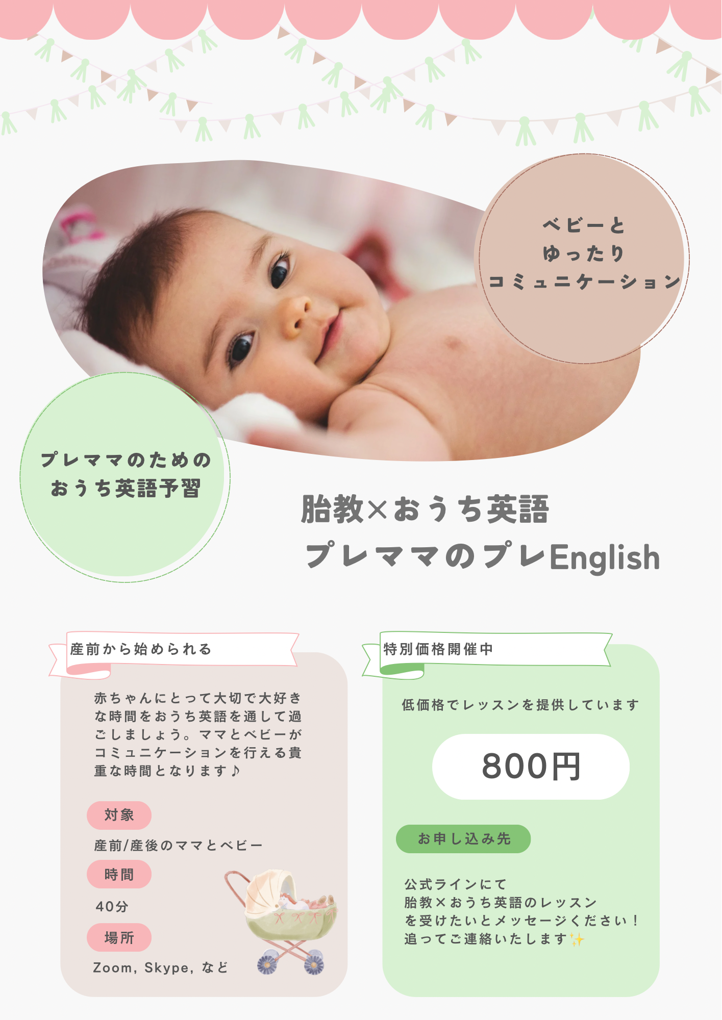 🌼ベビーと一緒にコミュニケーション🌼ベビーは産前からママの声を認識してます。そして言語習得も進んでいます。胎教×おうち英語で、ベビーと一緒にコミュニケーションをとりながら、おうち英語を楽しみませんか?詳しくは公式ラインまでご連絡下さい→https://lin.ee/lvRvnXq