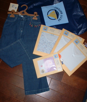 今度のセールはスルーのつもりで秋物を購入した。紫色のラインのがとっても気に入って買ってみたのはいいけれど、小さい花柄のスモッグは4T、コーディロイのAラインは4なのに、大きさを比べたらスモッグの方が大きい。コーディロイは伸びない上に小さめなのではたして秋に娘が着れるのか心配。幸い後ろにチャックが付いているので着れない事はないとは思うが、問題は身幅、、脇とかきつかったらNGです。サイズ5を買えばよかったなぁ~。それと、白の半そでにしみが付いていた。洗濯したら取れるかなぁ~と思って洗濯したけどとれないの。ジンボリーだとたまにあることで今まで目立たないところだったのでカスタマーに連絡はしなかったのだけど、今回は首元でかなり目立つところに1cmくらいの染み。しかも白だから、、とりあえずカスタマーにメールでその旨伝えました。激安セール品ならば差ほど思わないのだけどね、、、。