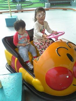 昨日はパパとお決まりの東京ドームシティ、だけどボウケンジャーは来週本物が出演するので今回はショーを見ずに娘がどうしてもわんぱくバスに乗りたいというのでアトラクションだけやりにいった。娘の乗りたいものを一通り乗った後私がのりたかったゴンドラの中に入って上下する乗り物に娘とはじめて乗ることに、、娘怖くて一歩も動かず、しがみついてます。 てっぺん付近でとった東京ドーム 乗り物を終えて一休み、、。(今日はストアーズを着せてみた。娘のTOPSはベルメゾンでベスト付きスカートがストアーズパンツはアネカゼファーです。息子はTOPSがストアーズです)その後飽きてきたので今度は花やしきへ、、、娘と乗ったのは白鳥さんがぐるぐる回るやつと自転車をこぐようなやつ等、、私はローラーコースターが大好きで娘とぜひ乗りたかった。狭いところをすごいスピードで走るジェットコースター昔からあるため音とかすっごいうるさくって今にも壊れるんちゃうか~~?っていつも乗るたび思う恐怖感が好き。でも110cm以上で娘のれずに私は残念だけど、娘はホッとしていた、、。 わけのわからんショーをやっていたがそれなに面白かったので記念撮影。その後浅草で試食を楽しみ、ふぐを食べて帰ってきました。息子はおっぱいを辞めてからなんだかとってもしっかりしたみたいで、昨日も抱っこはあまり言わず、ずっとベビーカーに乗ってたし、、。夕食もちゃんと食べていた。えらいです!******************でもね、、、、、、、、、、、昨日の夜中、また夜鳴きが始まりました。「いや~~」と繰り返し泣き叫ぶ息子。部屋を代えリビングに連れて行きなだめていると隣の部屋からパパの声「もぅ~おっぱいやれやぁ~!」その言葉に頭にきた私は結局おっぱいをあげてしまったのです。でも、息子にも言いました。寝るときだけよ!息子はうなづきうれしそ~におっぱいしてました。あ~~~せっかく辞めたのに!!しかしそんな気持ちも息子の顔を見たらなんかとっても幸せな気持ちになって一時間くらい離れませんでした。私もなんだか体がすぅ~~~と軽くなるというかさわやかな気分といいましょうか?ものすごい出たけど、、、。朝起きても息子はねだりません。パパも昨日のことを言ったら「ごめん、俺疲れてたみたいだ、ぜんぜん覚えてないよ」やっぱり!うちのパパはショッチュウ寝言言ってるので、そんなことだろうと思いました。まぁしょうがないか、、。パパが息子に「昼間はおっぱいなしよ~」といったら息子は「うん、うん」とうなづいていました。さて本当に昼間だけは大丈夫でしょうか?こんな感じだと結局卒乳できませんよね?ダメだなぁ~と思いつつ、まだ私と息子の気持ちはきっぱりと終わらすことが出来ないようです。夜中の授乳はもうしばらく続いちゃうだろうなぁ、、、、。